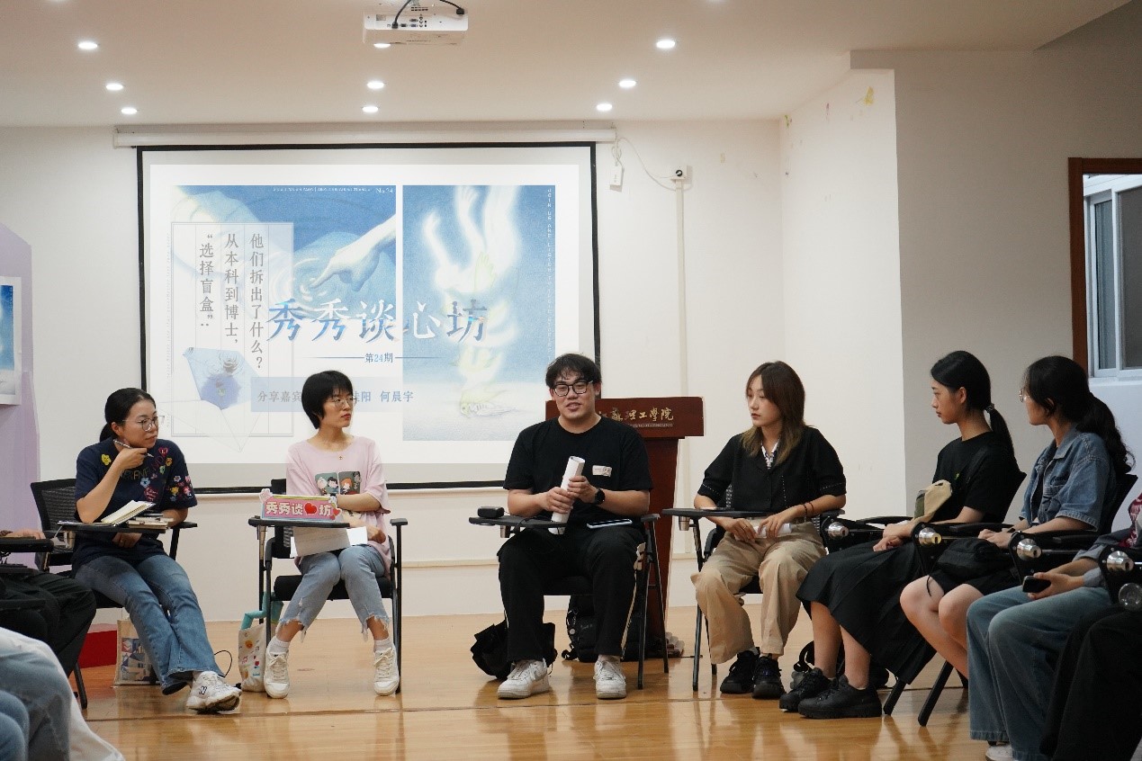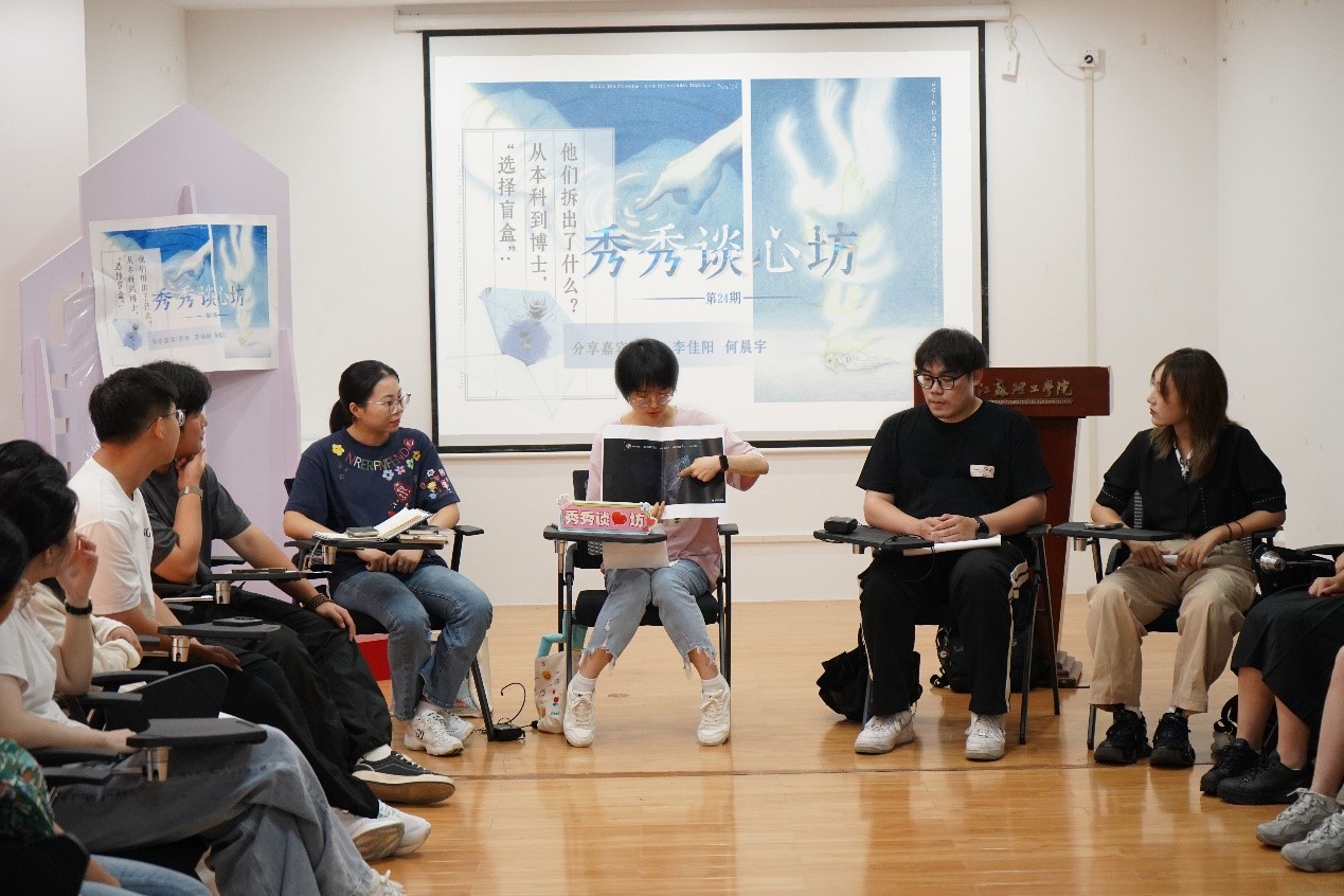 活动现场气氛温馨,同学们在聆听中反思自身选择,并在互动环节踊跃提问。活动最后,蔡烨老师为每位嘉宾分发纪念本,并在总结中表示:“每一个选择都是一次‘拆盲盒’,无论结果如何,都是成长的一部分。秀秀谈心坊愿继续做大家的‘片尾字幕’,陪伴每一段青春的叙事。”