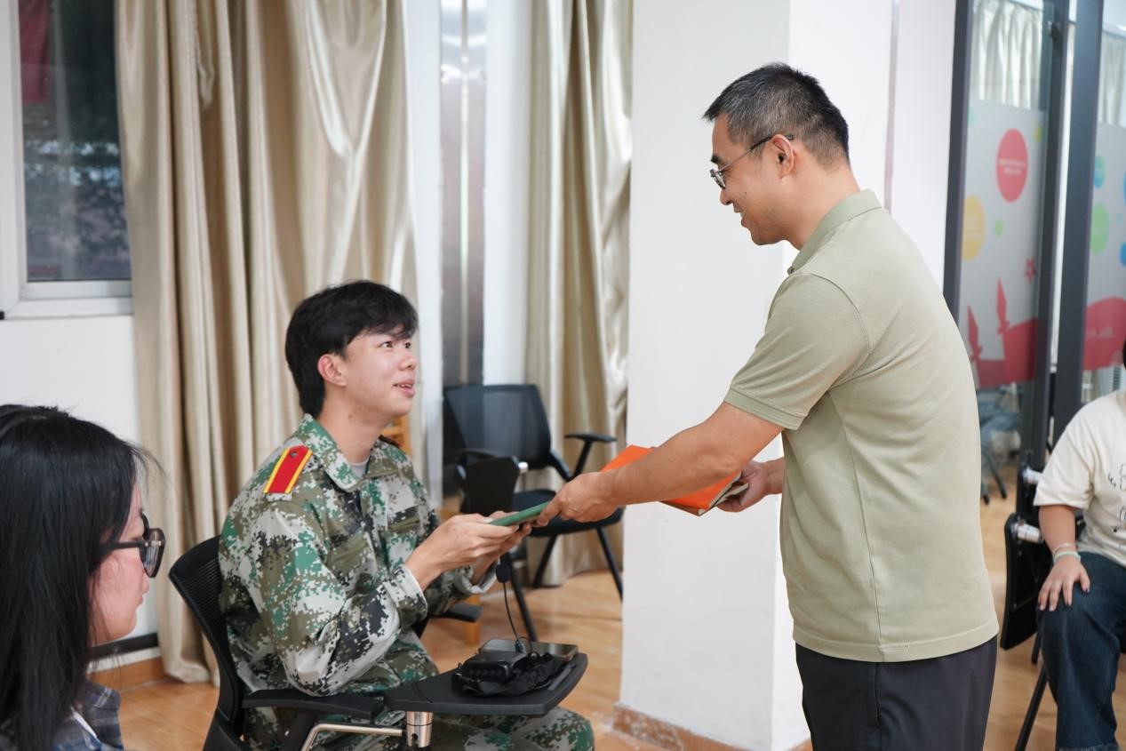 分享结束后,陈院长寄语学子,坚定理想信念,做民族团结的践行者,要像石榴籽般紧密团结,从多方面提升自己。最后,两位老师为各位分享人分发纪念本。