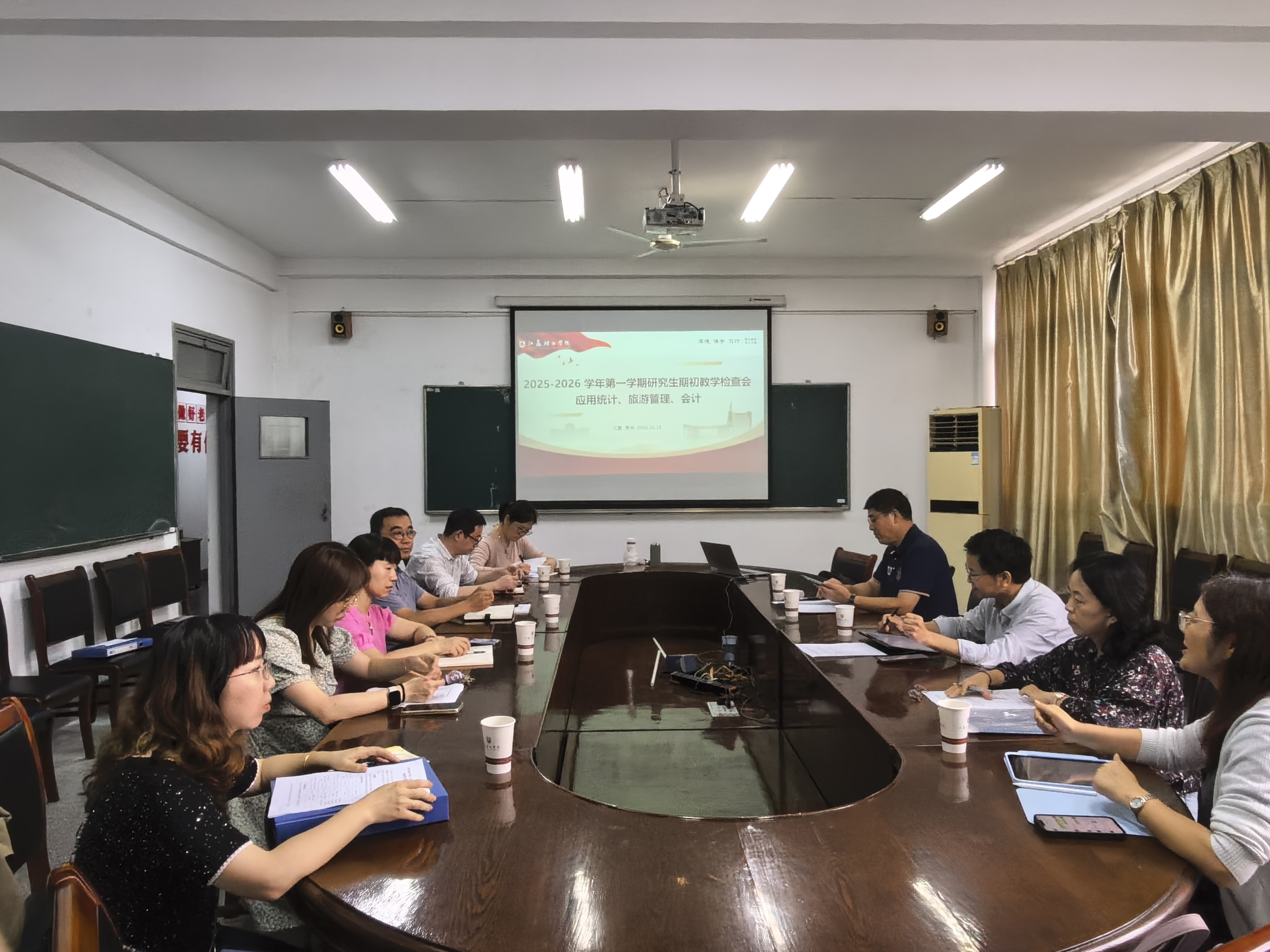 10月16日,为全面了解新学期研究生教学运行状况,保障教学质量,校研究生院、校研究生教育督导组莅临我院开展2025-2026学年第一学期研究生期初教学检查工作。应用统计、旅游管理、会计相关学位点负责人与研究生秘书参加了汇报交流会。