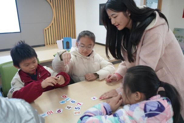 “华罗庚数学讲堂”宣讲团则以“话剧+游戏”的形式传递数学魅力与爱国精神。简短的话剧串联起华罗庚先生逆境求学、归国报国、用数学助力农业生产的人生片段,让孩子们感受到先生的钻研精神与“数学服务生活”的理念。随后的“等式拼接”游戏中,小朋友们分组协作,运用数字和运算符号卡片拼出完整等式,在破解难题中学习集体智慧。