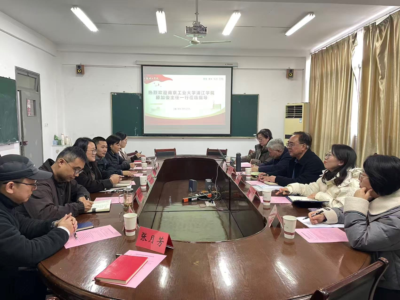 2025年12月3日,南京工业大学浦江学院基础部滕加俊主任一行来访我院,就统计学科建设、人才培养与公共课教学等方面进行考察交流,共同探索新形势下基础学科的发展路径。我院院长孟凤娟出席并主持交流座谈会,副院长陈雪平、副书记司斌、大学数学系副主任刘海生、大学数学教学部副主任曹毅及研究生秘书胡艳平共同参会。