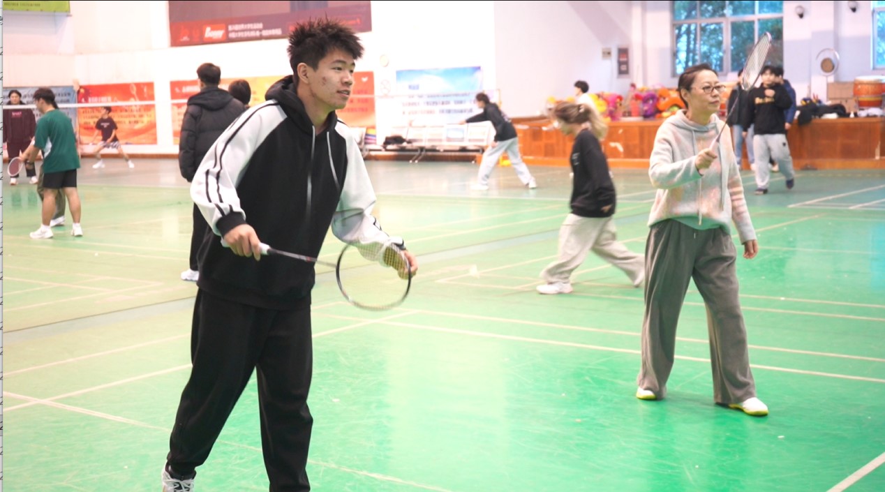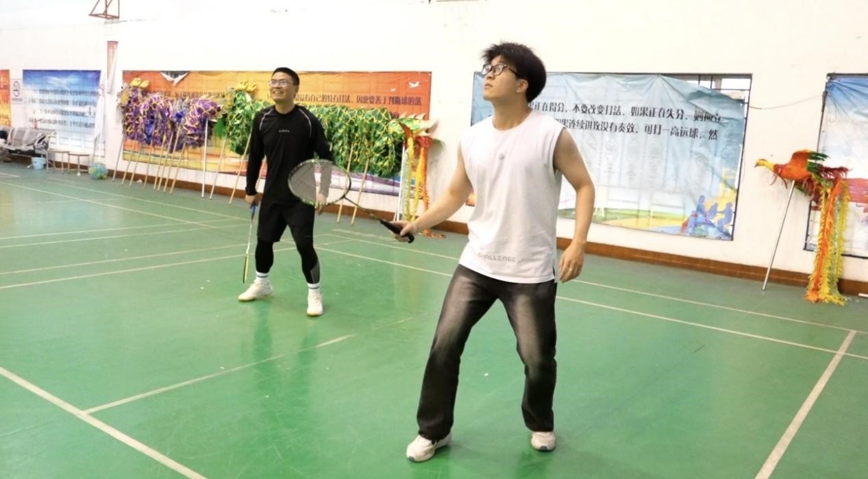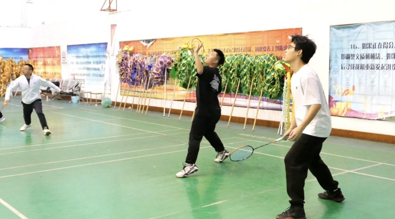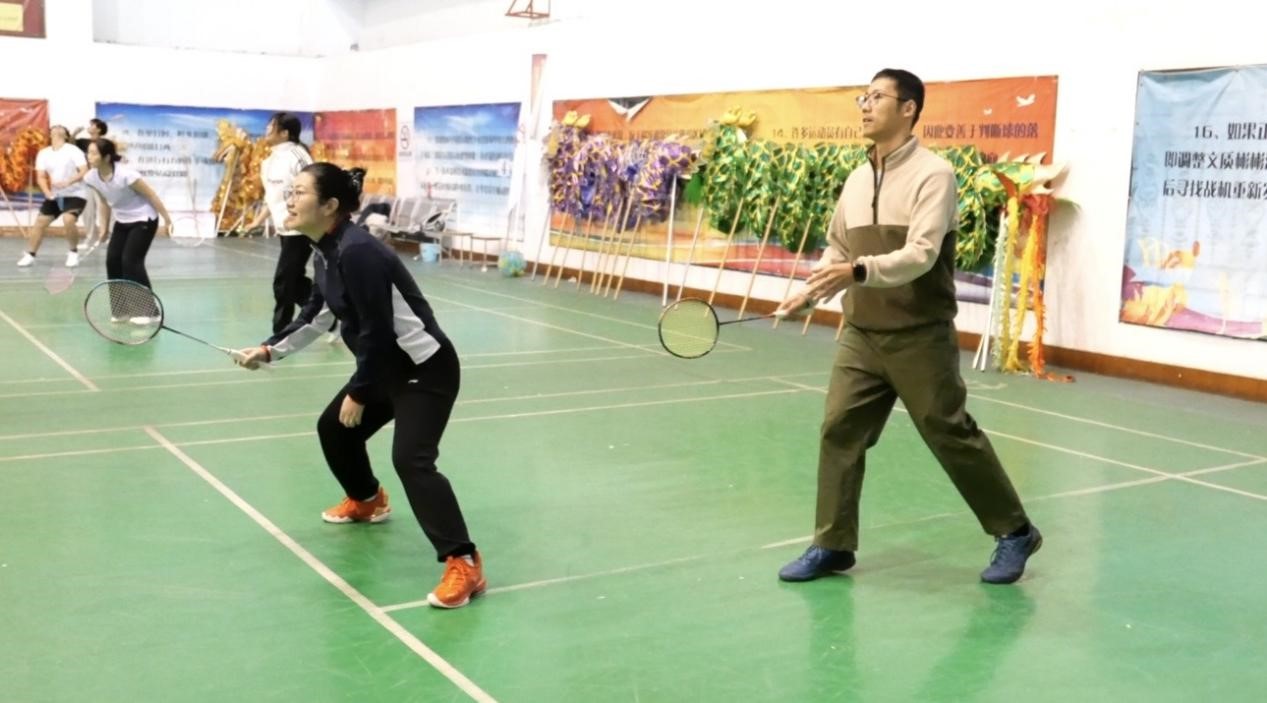 比赛分为红蓝两组,师生混合组队,以团队总分接力的形式进行。平日里三尺讲台的老师与勤学不辍的学子同场挥拍,高远球划出优美“抛物线”,网前轻吊暗含“精确计算”,巧妙配合更勾勒出默契的“同心圆”。比赛设置最佳拍档奖,薪火相传奖和青出于蓝奖。