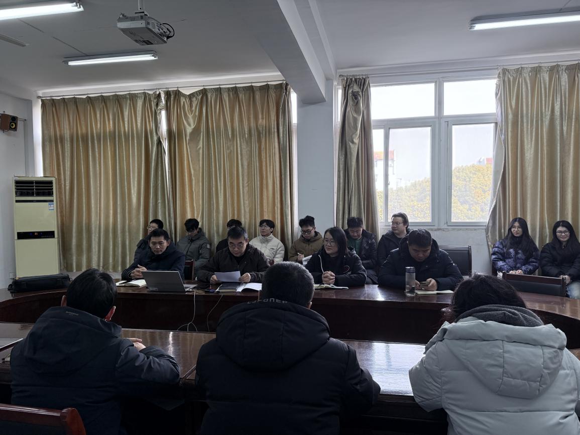 会上,陈雪平首先传达了学校2025年研究生培养工作成果和2026年工作计划,然后对数理学院本学期的研究生工作进行了全面总结,回顾了学院在研究生培养、学术研究等方面取得的成绩,同时对下一阶段研究生工作进行部署。司斌书记开展了假期安全与纪律专题教育。他强调了假期遵守校规校纪、注意人身财产安全的重要性,提醒研究生合理安排生活,确保度过一个安全、充实的假期。研究生秘书胡艳平逐条领读了《研究生导师指导行为准则》及江苏省研究生导师职业道德规范“十不准”文件。导师代表孙洪全和研究生代表郑承舜分别发言,孙洪全分享了自己在指导研究生过程中的经验和心得,强调了师生沟通的重要性;郑承舜表达了对学院和导师的感激之情,并表示将努力学习,不辜负学院的期望。